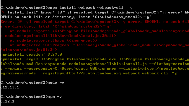 解决安装是报错 no such file or directory, lstat 'C:\windows\system32\–g'