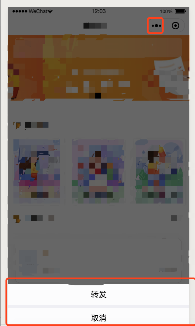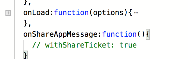 微信小程序实现右上角分享(通俗易懂) 小鱼吃虾米 2020-01-10 2,027 阅读1分钟 点击右上角三个点如果是这种效果,就说明在当前页面没有设置转发函数; 在onLoad同级需要写onShareAppMessage实现分享的函数,👇 withShareTicket,用它来获取群信息,如果要分享给群的话需要设置一下,如果不需要,直接写个onShareAppMessage函数就可以实现转发了,上图!👇