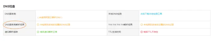 ② DNS服务商解析结果显示DNS未设置解析记录,则需要检查您是否为忘记设置或误操作过删除等行为。
