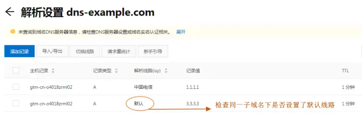 ③检查智能解析线路是否未设置默认线路