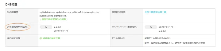 ① 检查解析结果和您在DNS服务商控制台处设置的解析记录对比是否一致,如一致代表权威DNS解析是正常生效的。