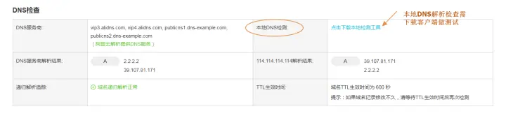 ③ 检查结果和您在DNS服务商控制台设置的解析记录不一致,此种场景则需要联系您的DNS服务商进行解析数据刷新处理。