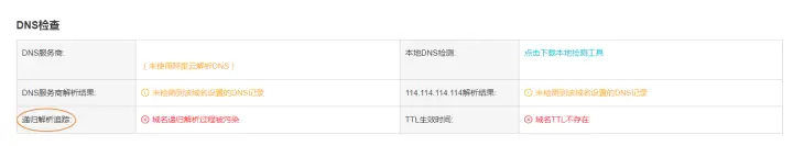 ①通过域名检测工具,如递归解析追踪报错“域名递归解析过程被污染“。
