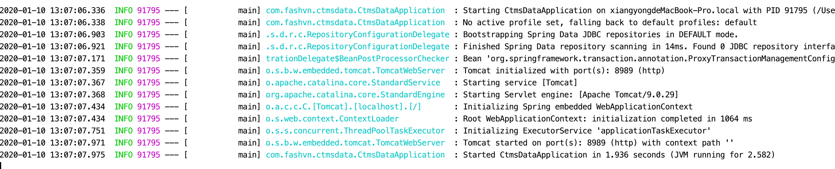 或者,您可以通过使用--trace标志(或application.properties中的trace=true)启动应用程序来启用“跟踪”模式。这样做可以为选择的核心记录器(嵌入式容器,Hibernate模式生成和整个Spring组合)启用跟踪日志记录。