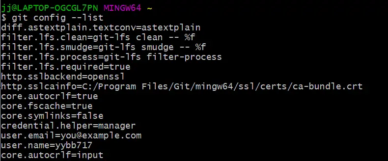 git config --list命令来列出所有 Git 当时能找到的配置。