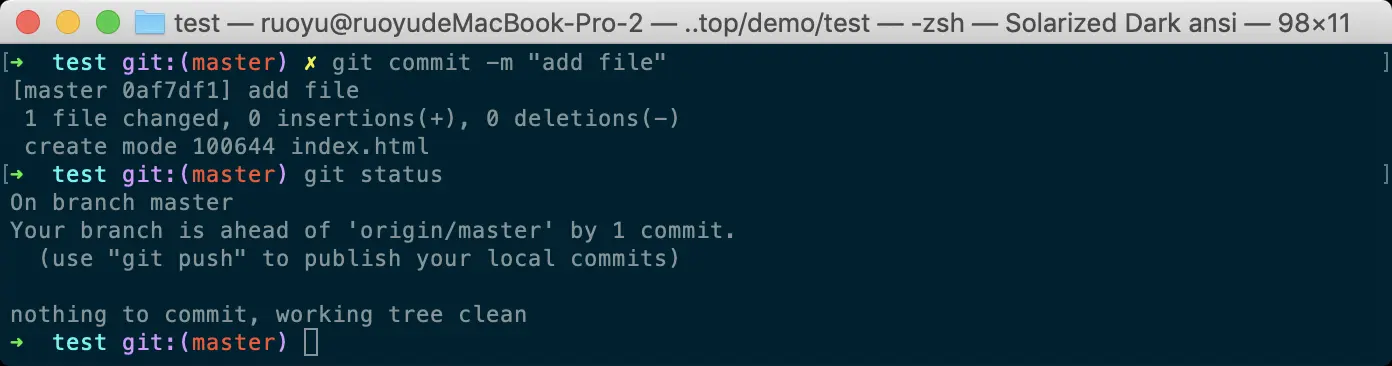 (2)也可以直接提交,但需要加上-a参数, 上面的操作等同如下操作