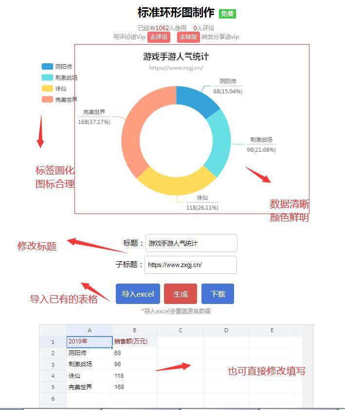 虽然都是环状图,自带的图标显得颜色暗淡,数据虽然也能看出比例,可以并没有我用工具制作出来的直接,百分比和名称都一目了然,不仅图文清楚,色彩也相对鲜艳,放在需要展示的报告中再好不过了。最主要的是小白也可以制作,不需要任何基础。最后安利给大家小工具的网站