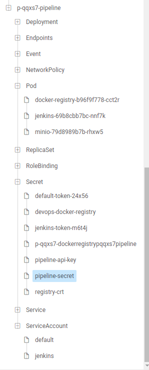 }我们通过kubernator ui查看下数据面k8s中部署的有关pipeline的资源,如图所示: