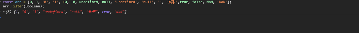 const arr = [0, 1, '0', '1', +0, -0, undefined, null, 'undefined', 'null', '', '蜗牛',true, false, NaN, 'NaN'];