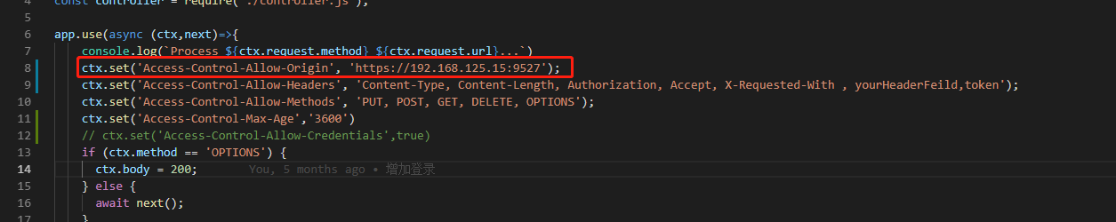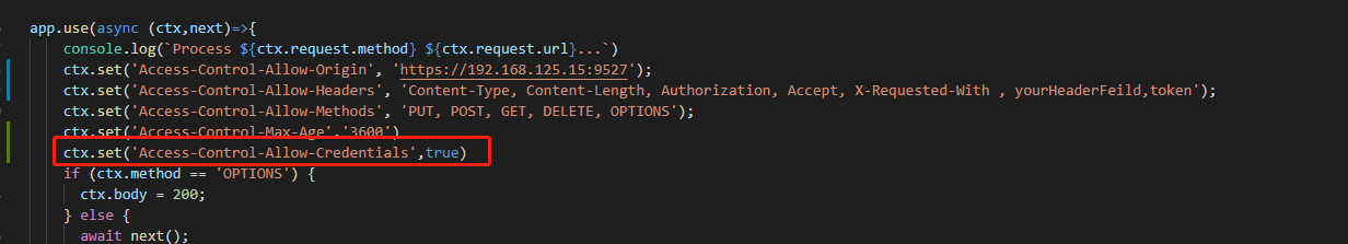 Failed to load http://localhost:3000/login: Response to preflight request doesn't pass access control check: The value of the 'Access-Control-Allow-Credentials' header in the response is '' which must be 'true' when the request's credentials mode is 'include'. Origin 'https://192.168.125.15:9527' is therefore not allowed access. The credentials mode of requests initiated by the XMLHttpRequest is controlled by the withCredentials attribute.