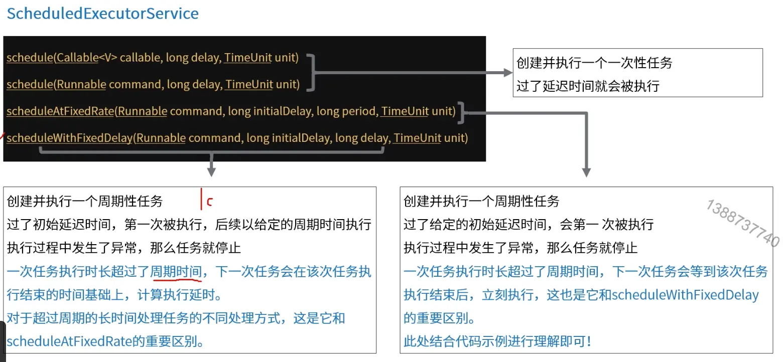// 周期性执行某一个任务,线程池提供了两种调度方式,这里单独演示一下。测试场景一样。