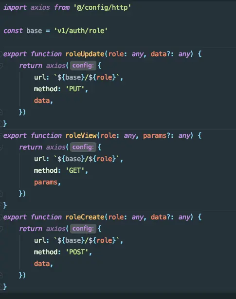 另外,axios的api文件也是根据后端路由配置自动生成的,解放双手的同时还能统一叫法,再也不会出现后端一个/user-info到了前端变成myProfile()之类的无语问题了👏。
