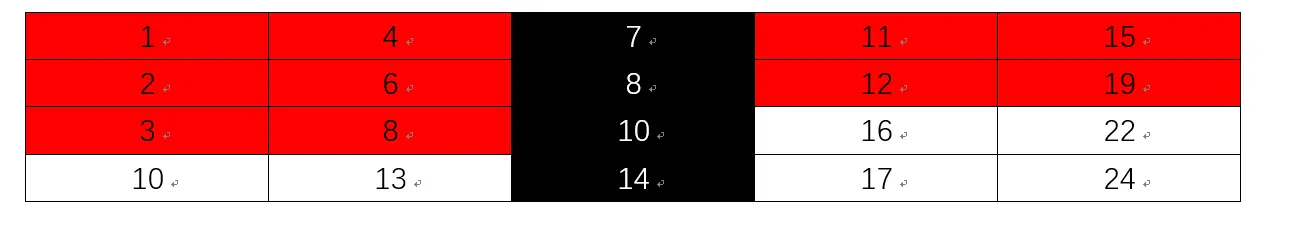以下面这张图为例,我们假设target = 9,那么中间列找到 10 以后,发现比 9 大,因此寻找左上和右上两个标红的矩阵: