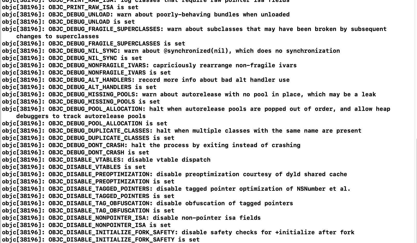 if (PrintHelp) _objc_inform("%s: %s", opt->env, opt->help); if (PrintOptions && *opt->var) _objc_inform("%s is set", opt->env);