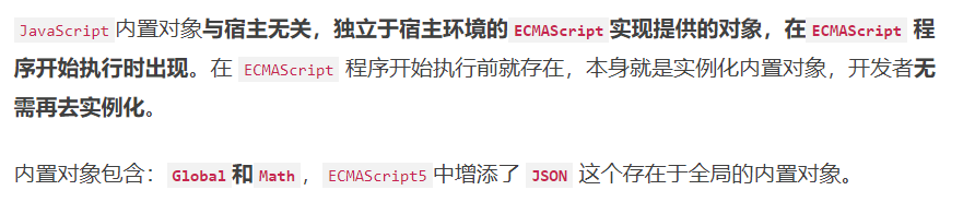 ECMA-262对内置对象是,由ECMAScript实现提供的,不依赖宿主环境的对象。