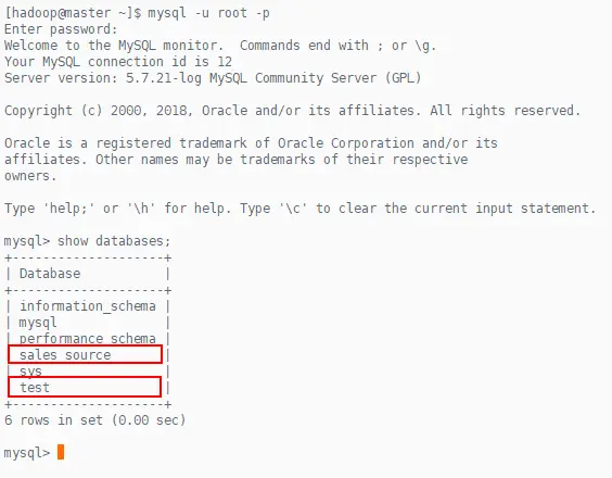 [yangqi@slave1 ~]$ mysql -uroot -pxiaoer sales_source < /tmp/sales_source.sql