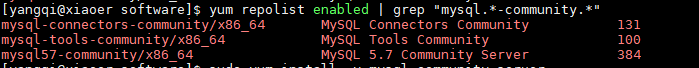 [yangqi@xiaoer ~]$ yum repolist enabled | grep "mysql.*-community.*"