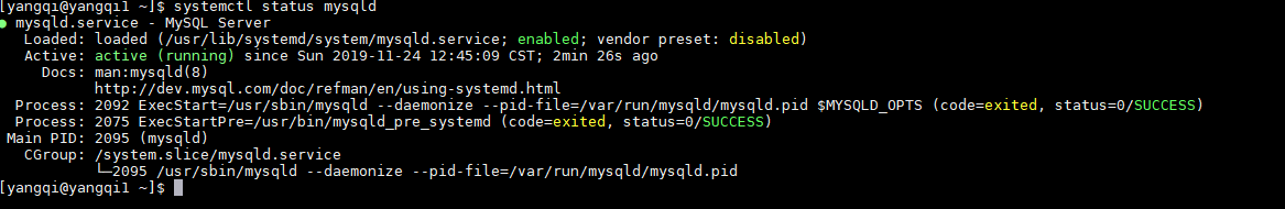 [yangqi@xiaoer ~]$ sudo systemctl start mysqld
