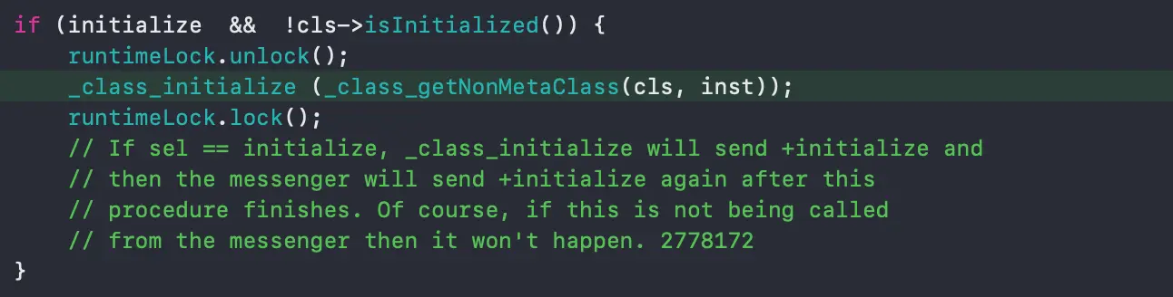 根据判断条件只有类未初始化的时候才会调用_class_initialize,而类在程序运行期间只会