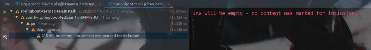 - 解决方法: 没关系,因为新创建的项目里没有类。当然编译不出jar包。