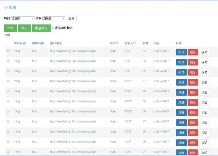 2.IAPTest支持接口用例管理,接口多用例测试,支持定时测试任务,测试报告持久化