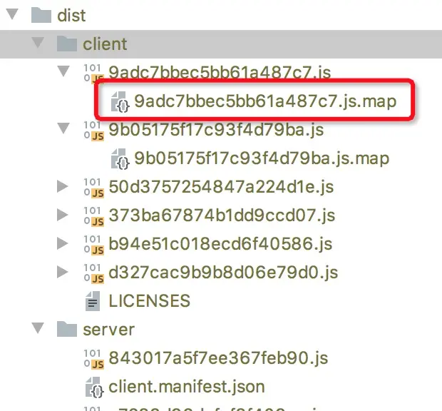 可以设断点调试,不显示列信息,生成相应的.Map文件,并在合并后的代码尾部加上注释//# sourceMappingURL=**.js.map ,可以看到模块代码并没有被eval()包裹,此种模式并没有将调试信息放入打包后的代码中,保持了打包后代码的简洁性