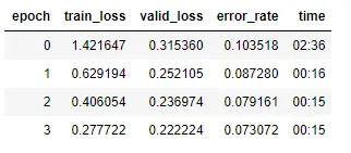 可以看到,经过4个epoch,我们获得了一个只有7%错误率的模型。