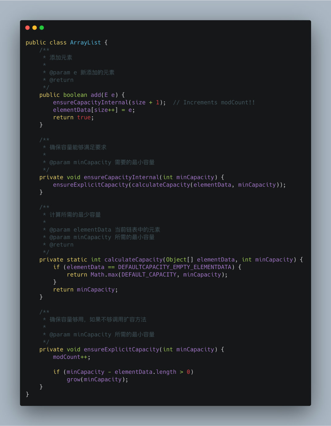ArrayList中非常重要的一点就是扩容,毕竟它的底层是依靠数组来实现的,而数组的本身的容量是固定的,不断添加元素之后就需要扩容,那么ArrayList是怎么进行扩容的呢?