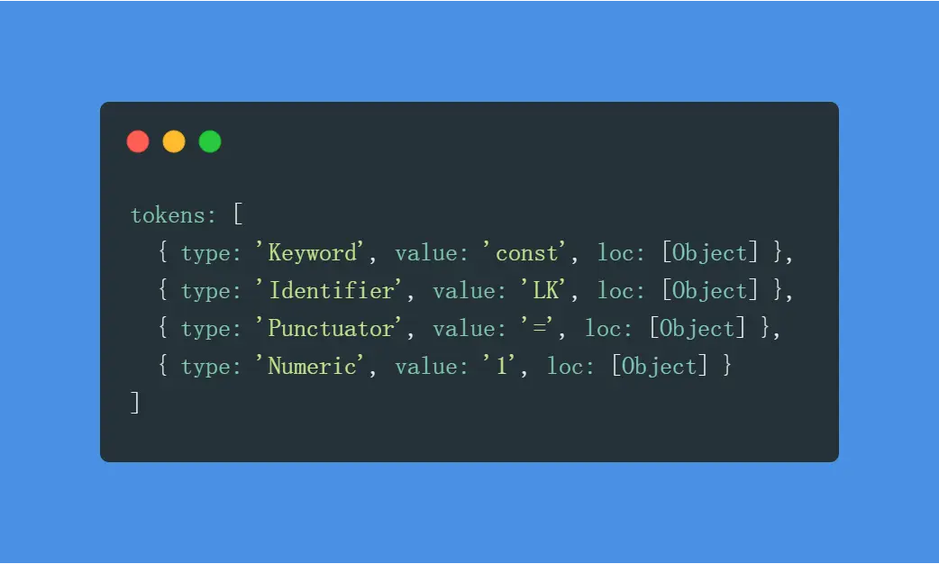 我截取了tokens对象,可以看到JS代码被切割为type、value的键值对。