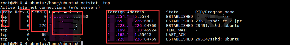 因为外部IP是随时变化的,所以大家敲命令(netstat -tnp)的时候要多观察下,可能每次得出的结果都不同