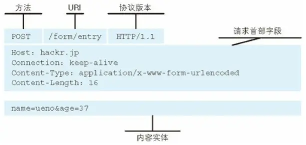 请求报文是由请求方法、请求 URI、协议版本、可选的请求首部字段和内容实体构成的。