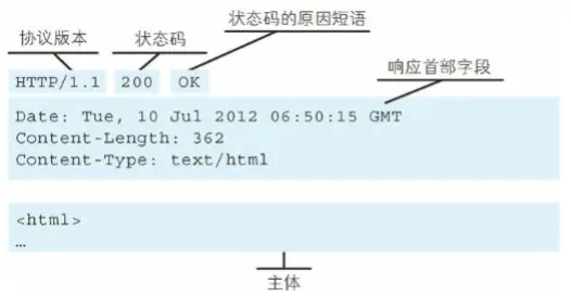 响应报文由协议版本、状态码、原因短语、可选的响应首部字段以及实体主体构成。