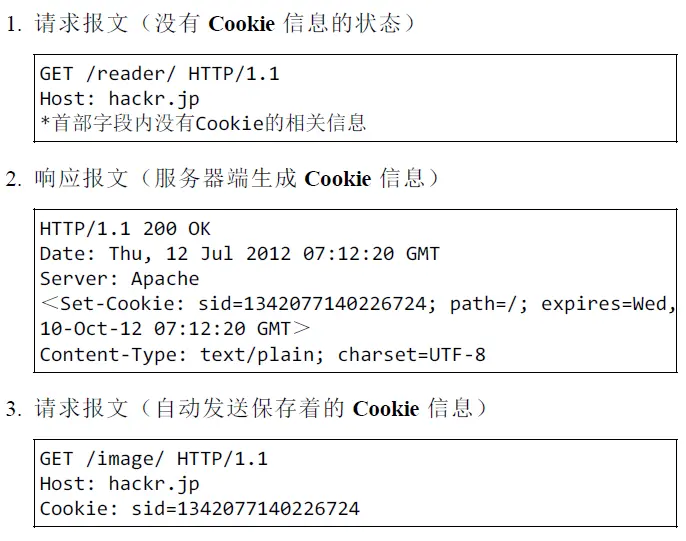 - HTTP 是无状态协议,它不对之前发生过的请求和响应的状态进行管理。也就是说,无法根据之前的状态进行本次的请求处理。Cookie 技术通过在请求和响应报文中写入 Cookie 信息来控制客户端的状态。
