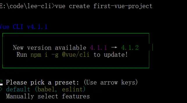 # 2)选择一个工作目录,并且用cmd进入该目录,创建你一个项目名称为 first-vue-project 的 vue 项目