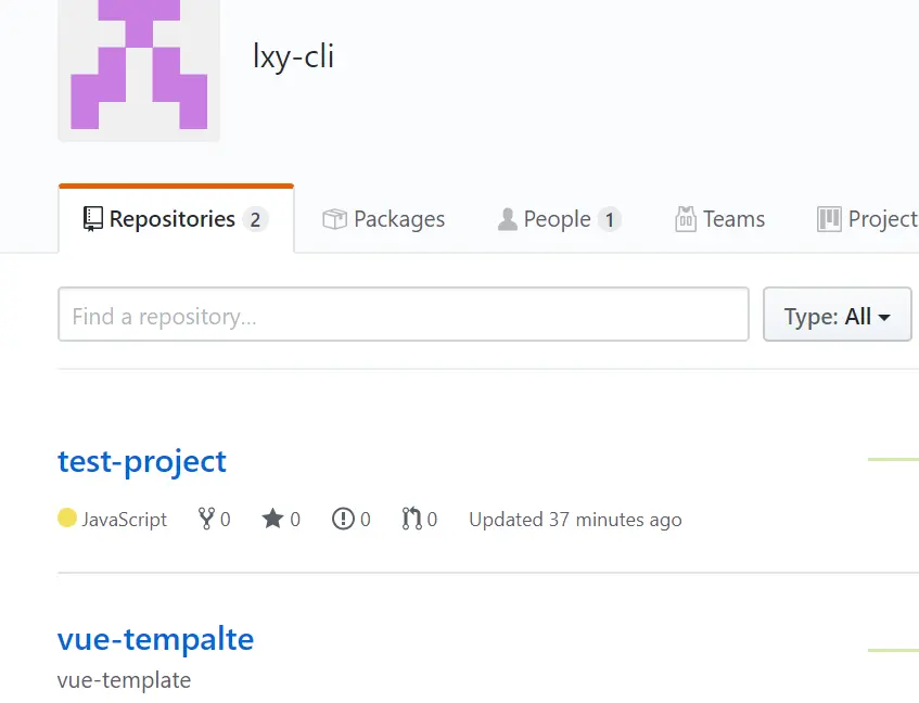 https://api.github.com/orgs/lxy-cli/repos的组织写的自定义的脚手架,参考价值是代码的思路分析,可将里边的链接地址更换为自己的,如果是简单的项目拷贝只需要更改链接地址,如果是负责的项目需要定制的话可以根据自己的逻辑修改,本项目中的src/utils/common.js 中的方法 copyTempToLoclhost 里边的复杂方法也是针对自己的项目编写的。当然后续还会优化的^_^^_^^_^5.项目发布
