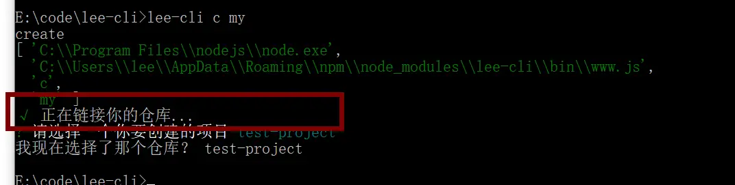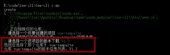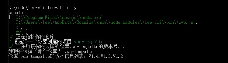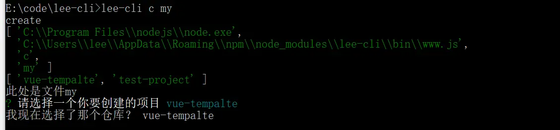 至此呢,使用lee-cli create <project-name> 初步完成了。当然还需要很多要优化的内容,比如我们在下载的项目中项目名重复,代码会被重复添加。还有很多请求错误没有监控。请求的仓库路径是写死的,最好是也可以通过命令行选择下载不同的项目、组织,还不完全是一个通用的脚手架工具。