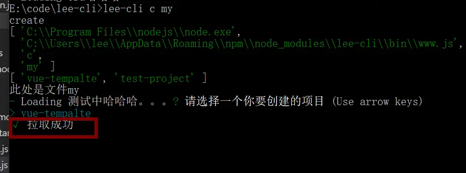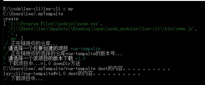 // 下载项目到临时文件夹 C:\Users\lee\.myTemplate