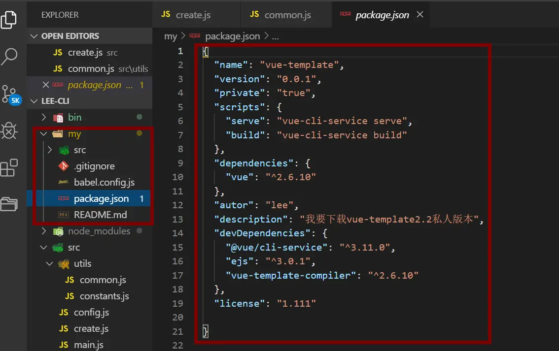 根据图2-4-22我们可以看出来当我们执行lee-cli c my 创建项目时,选择了vue-tempalte,选择下载版本v1.0我还我们下载到临时文件夹目录是:下载项目到临时文件夹 C:\Users\lee\.myTemplate 所以我们可以找到地址:C:\Users\lee\.myTempalte\vue-tempalte 打开可以看到下图(图2-4-23):对应我们github地址上的内容是一样的,如图(图2-4-24)