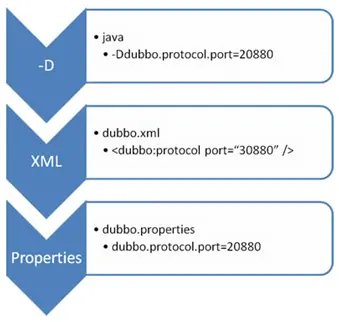 在此基础上记录dubbo官网介绍的常用属性配置,dubbo读取我们配置的属性时是有优先级的,优先级如下图: