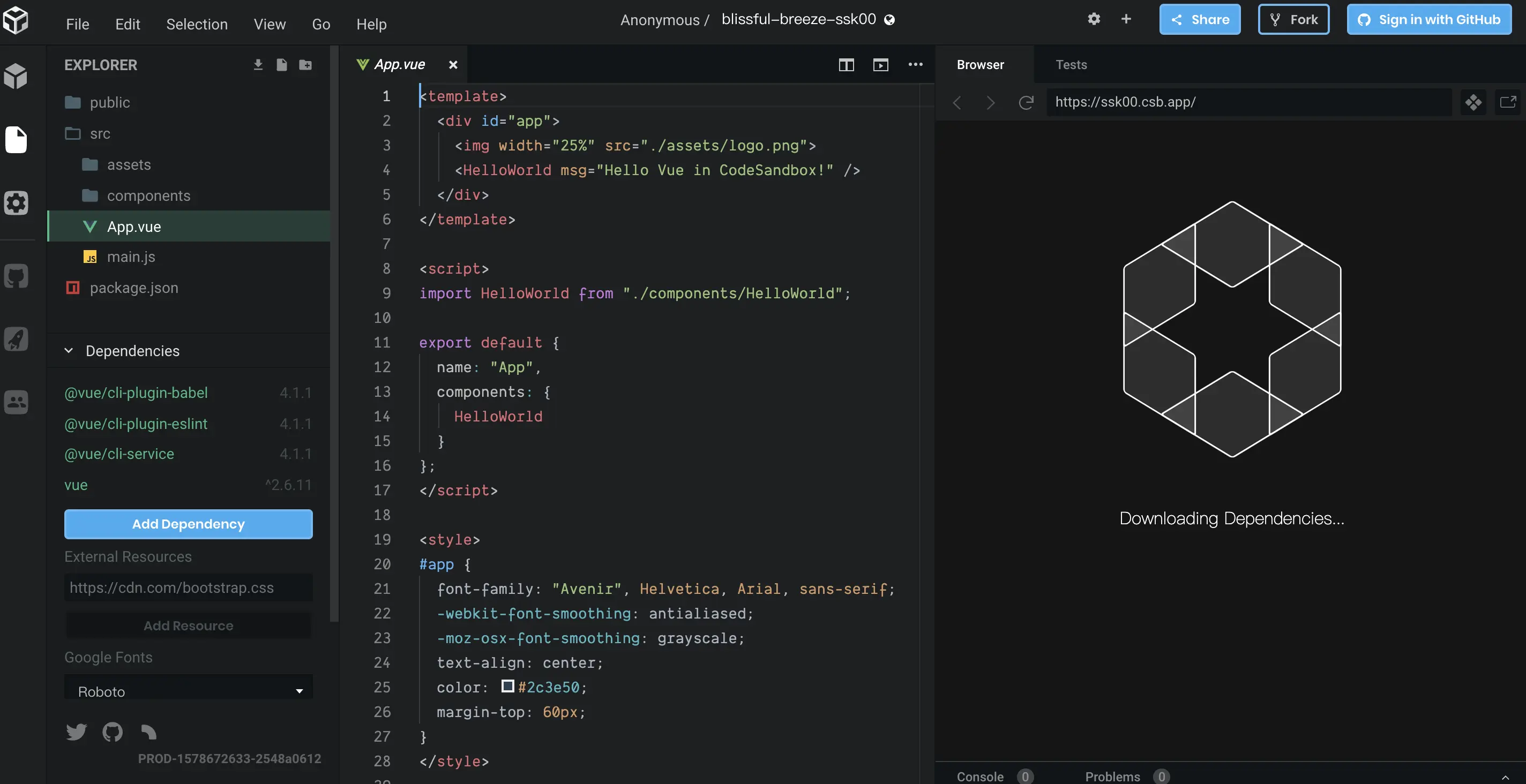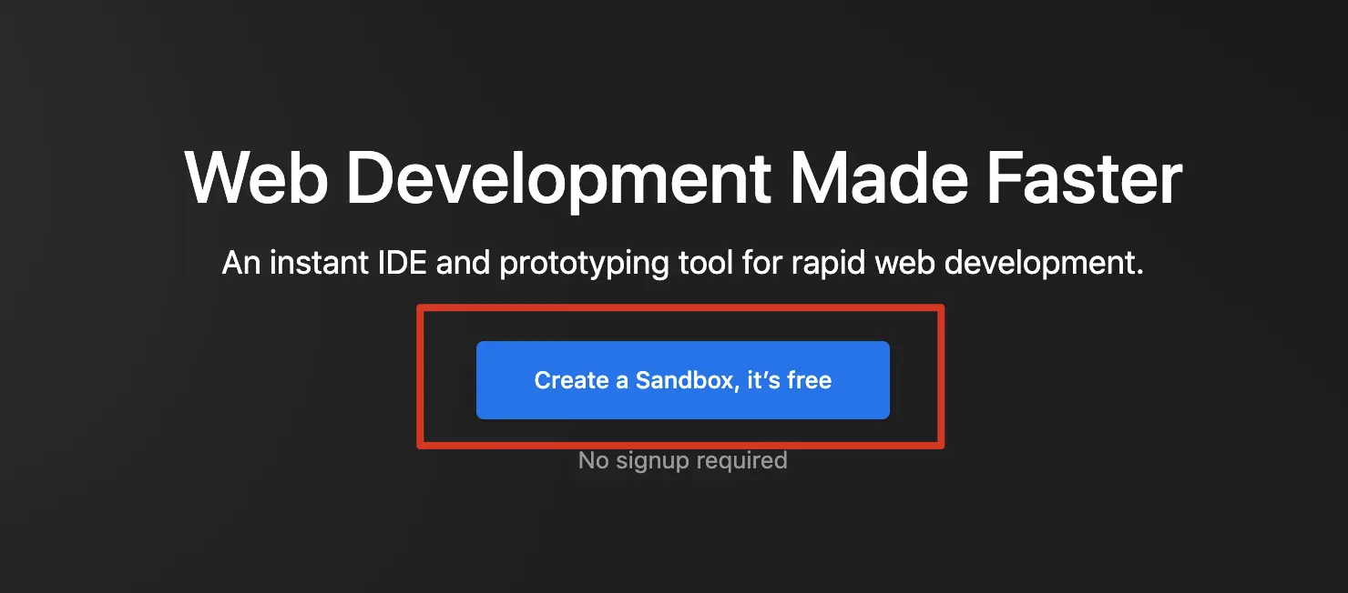 - 进入CodeSandbox: Online IDE for Rapid Web Development,但不要登录,不登录可以创建应用的数量是无限的。