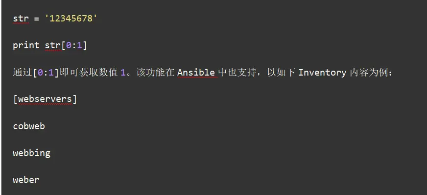 Ansible底层基于Python,因此也支持域切割。Python字符串域切割的示例如下: