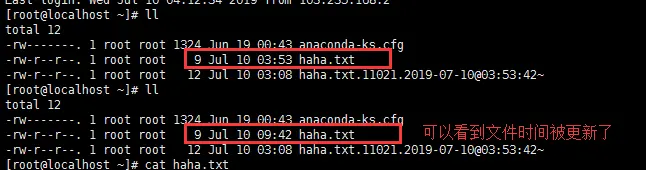[root@localhost ~]# ansible 103.235.168.56 -m copy -a 'src=/root/haha.txt dest=/root/ backup=yes'