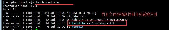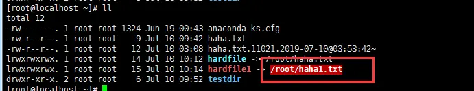 #在 103.235.168.56 上为 haha.txt 文件创建硬链接文件,软链接名为 hardfile,执行下面命令的时候,haha.txt已经存在。 [root@localhost ~]# ansible 103.235.168.56 -m file -a 'path=/root/hardfile state=link src=/root/haha.txt'
