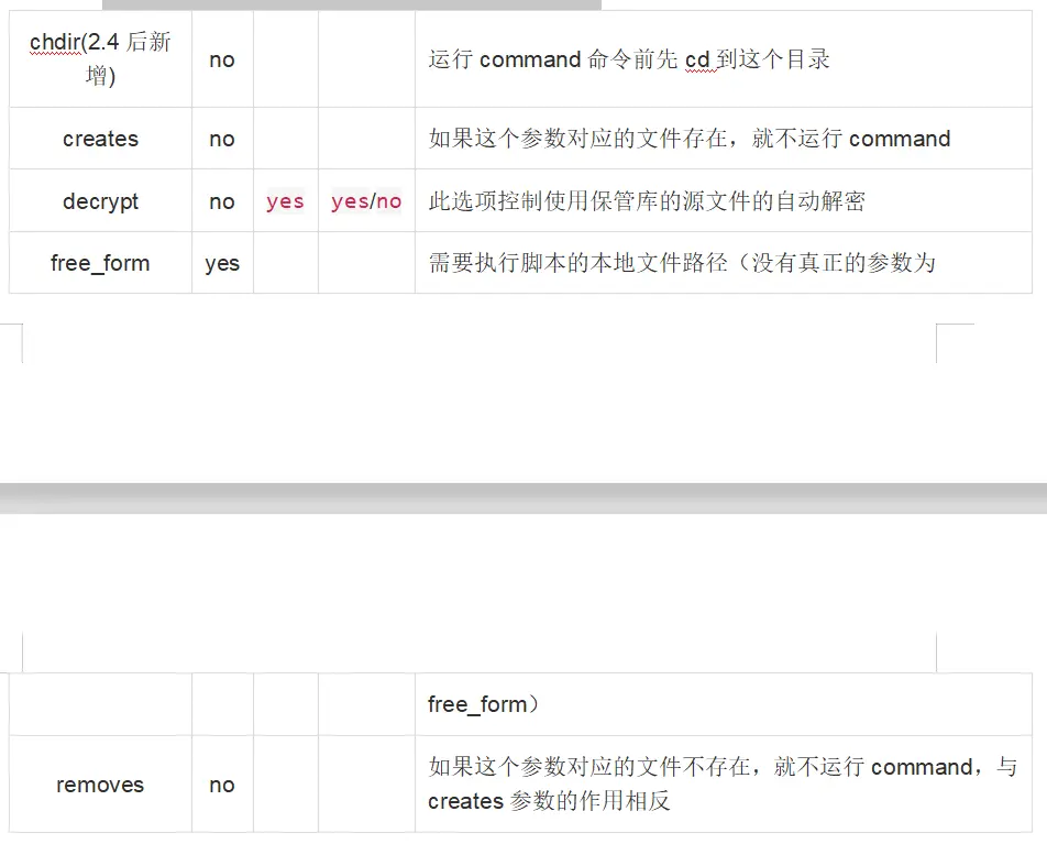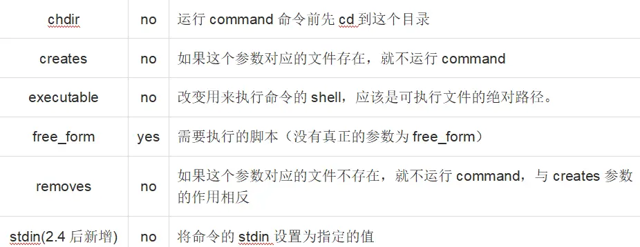 让远程主机在shell进程下执行命令,从而支持shell的特性,如管道等。与command模块几乎相同,但在执行命令的时候使用的是/bin/sh。