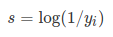 一个低概率的结果与一个高概率的结果相比,低概率的结果带来的信息量更大。现在,如果$y_i$是第i个结果的概率,那么我们可以把自信息s表示为: