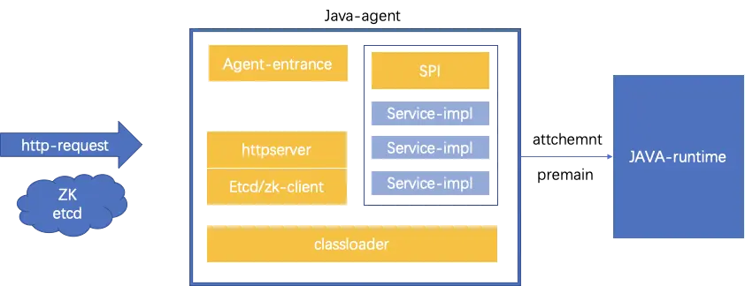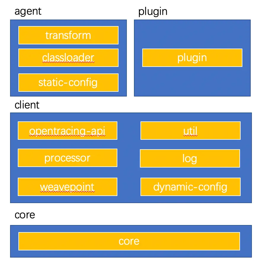 一个典型的java-agent相关的模块很多情况下包括上面几个部分,
