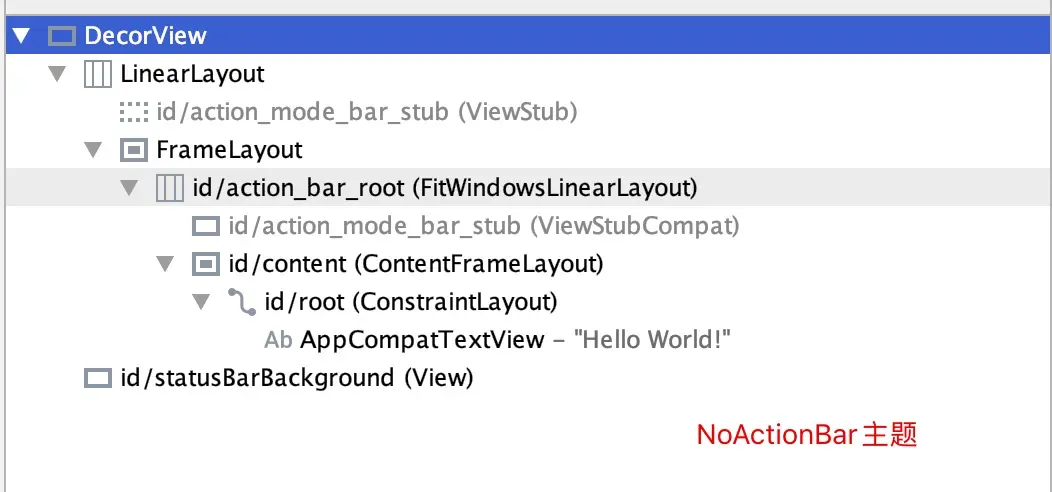 - android.R.id.content对应的是ContentFrameLayout。