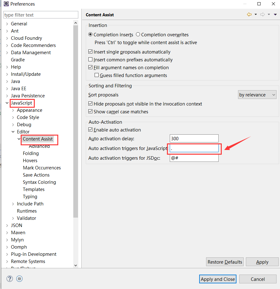 更改JavaScript代码自动提示触发器(Auto activation triggers for JavaScript)