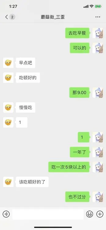 老板跟我们熟到什么地步,三歪或者我自己一个人吃,老板就会问你那个小伙伴呢,或者谁早去了,老板就会说你小伙伴刚才已经吃了走了,刚走。