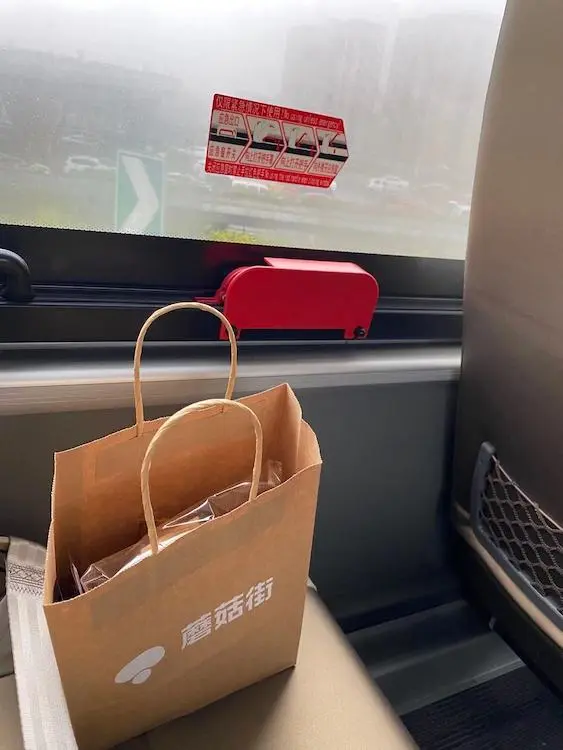 拿到餐包之后,大家都陆续登车,出发,公司专门为我准备了两个座位,我早就告诉过高层不需要这么铺张浪费的,最后我选择让补给包陪我度过这50分钟的车程。